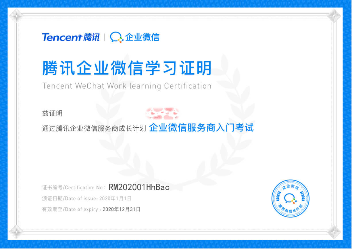 微抖天下(深圳)科技有限公司團(tuán)隊(duì)-企業(yè)微信服務(wù)商學(xué)習(xí)證書(shū)