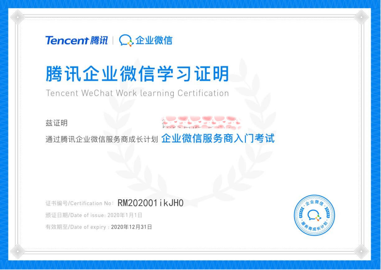 微抖天下(深圳)科技有限公司團(tuán)隊(duì)-企業(yè)微信服務(wù)商學(xué)習(xí)證書(shū)